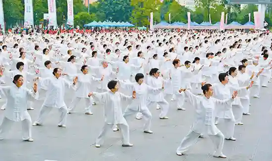 8月8日,“全民健身日”云南省启动仪式在玉举行,千余人在启动仪式上展演太极。