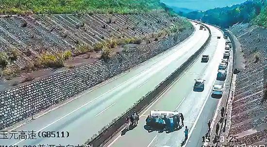 2月3日下午,昆磨高速公路玉溪段玉溪往元江方向K107路段,一辆面包车侧翻在高速公路上,车上共有6人,其中有两人为仅出生4天的双胞胎婴儿。危难时刻,一群热心人不顾自身安危,合力将被困人员救出,并将侧翻车辆移到了路边。庆幸的是,事故未造成人员受伤。