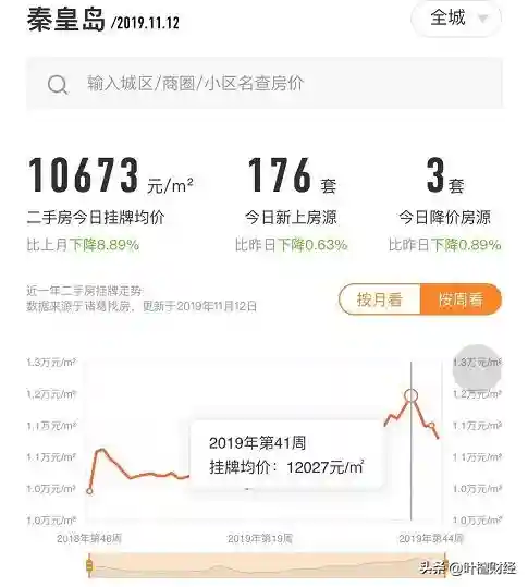 据诸葛找房,2019年11月最新一周显示,秦皇岛二手房均价下跌了2.1%,跌幅为全国第一。