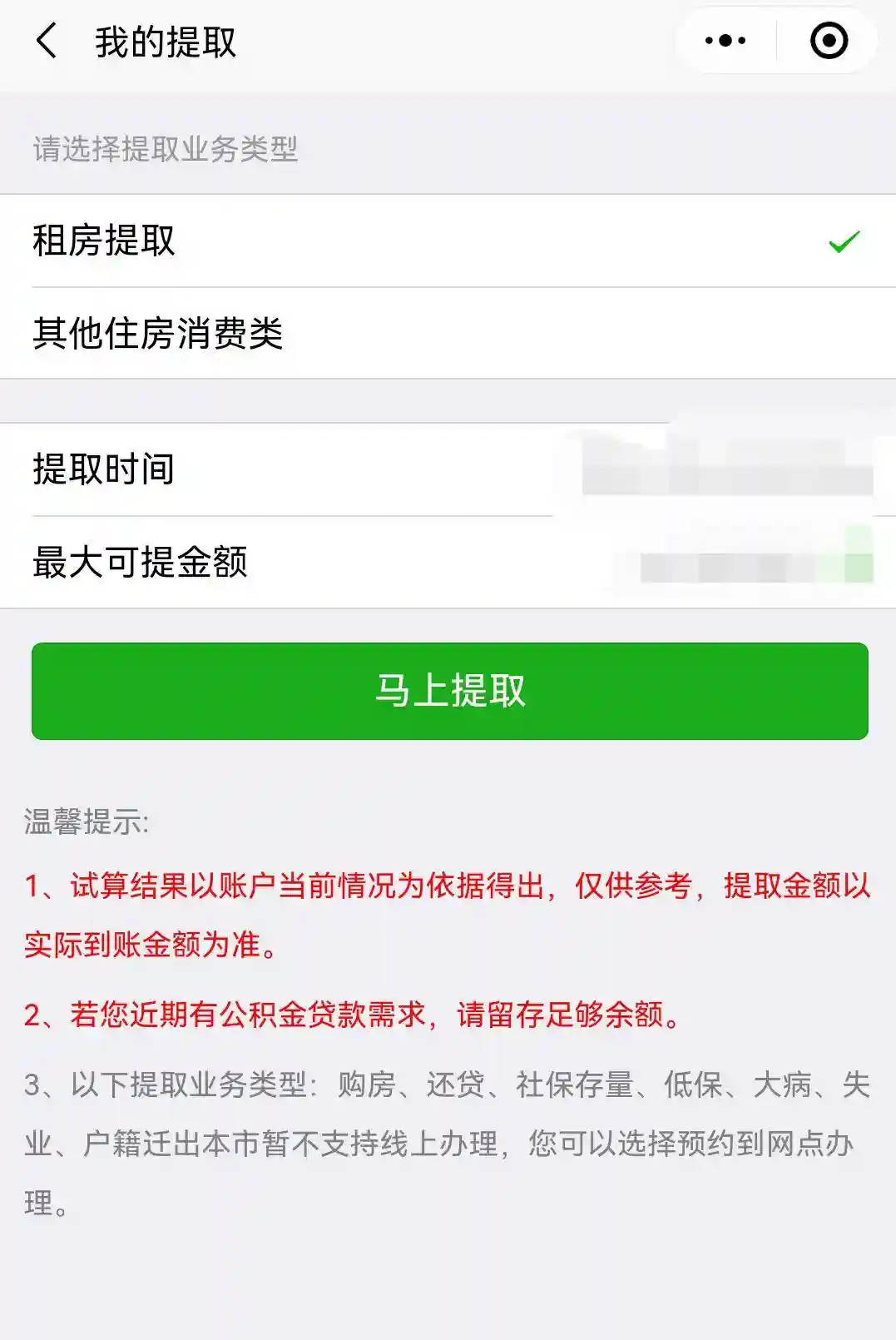 租房提取有关事项通知