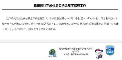 近日,青岛市住房公积金管理中心在官网发布信息:我市顺利完成住房公积金年度结息工作。